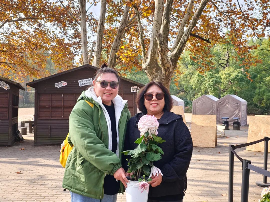 每年的“名菊回家”现场都很热闹,今年也不例外。菊粉们准时来领取精美的菊花,展现了大家对菊花和园艺的热爱。