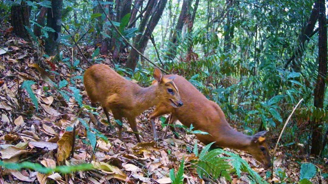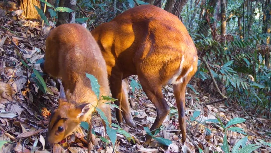 拍摄了一组赤麂(jǐ)寻找食物的珍贵画面
