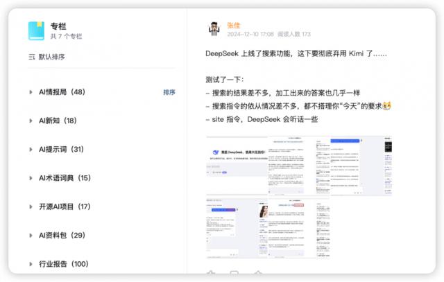 每天早上都有微信群 AI 早报,上午和下午还有“读报时间”,还有各种各样的日常霸屏级别。 AI 工具体验,提示词编排思维,行业动态解读同步。
