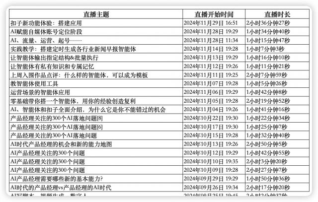 刚刚复盘,我特意去视频号后台看了一下直播记录。在过去的一年里,我为学习圈做了一个工作。 130 场 AI 应用、实战、热点解读相关直播,累积肝脏 257 小时!