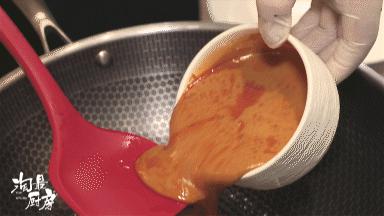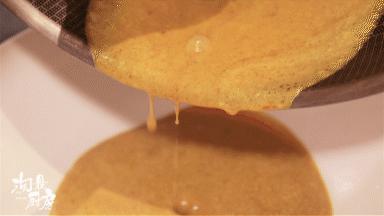 ❶ 转中火,锅中加入 1 调汤(15ml)油;然后放入; 1 用碗(250ml)调制的咖喱酱。