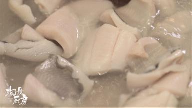❹ 焯水 2-3 一分钟,当鱼变白卷曲时,就可以捞出备用。
