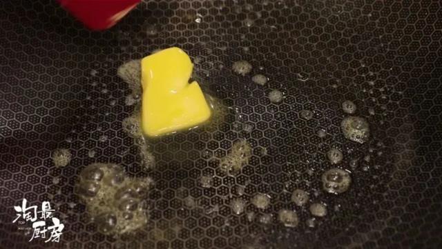 ❶ 开中小火,锅中放入 1 黄油调汤(15g),加热至融化。
