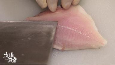 ❶ 用刀子平贴鱼骨,沿切开鱼身,切下鱼肚肉。