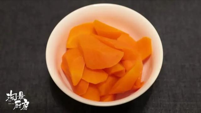 ❺ 将胡萝卜洗净去皮,换成小块,蒸熟备用。