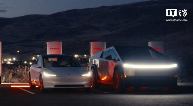 IT 世家 12 月 15 据特斯拉报道,美国部分配置 V4 超充桩超充站率先支持超充桩。 Cybertruck 以高达 325 KW功率充电。这一举动先于计划。 2025 年初推出,支持高达 500 KW充电功率 V4 全面启动充电柜。