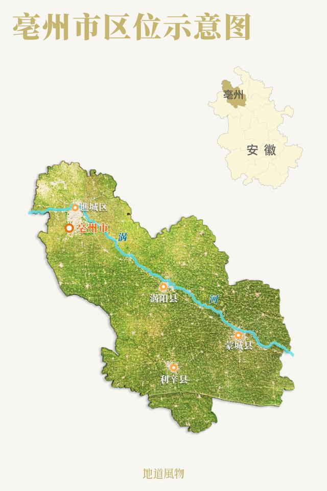 而且亳州的形态之所以表现出这条长条,是因为它的城市走向,大致是沿着城市走向,涡河的流向设定的。这条河流是淮河的第二大支流,它起源于黄河南堤不远处,一路向东南进入淮河,是黄淮与豫皖两省交流的重要河流。。亳州以下涡河通航条件极佳。,在曹操和宋金阶段,金军都是从涡河引水兵进入淮河,换言之,因为这条河,亳州成了一座真正的“淮河流域城市”。