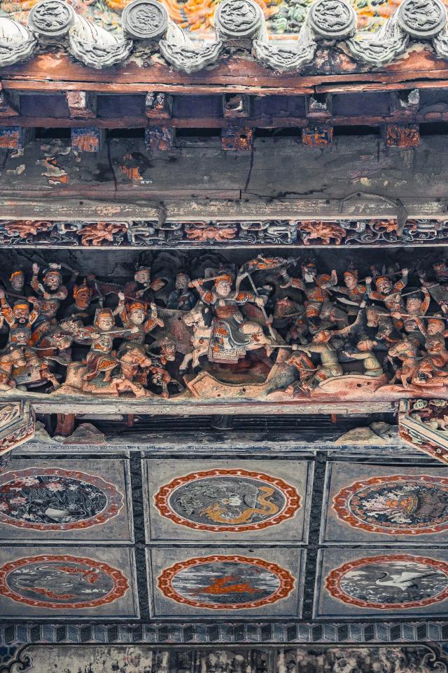 但是,在和平时期,亳州这一豫皖枢纽的地位,将立刻让她成为一座融合南北的繁华商埠。今天的亳州,除了上面提到的运兵道,最值得一看的地方,就是一座始建于清初的“花戏楼",这是一个美丽而精致的商人会所建筑群,尤其是在观戏中使用的戏楼,它的砖雕、木雕、彩绘都非常精美,堪称同代建筑之佳品。,还能让观众一窥当初亳州商业生活的繁荣,商人生活的奢华…