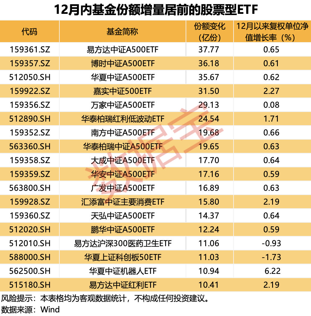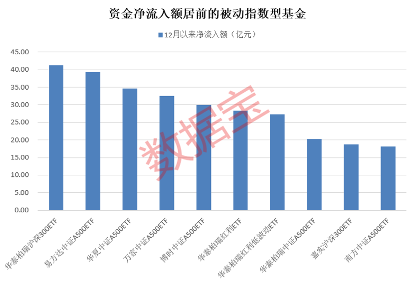 根据证券时报·数据宝的统计,从12月份开始,ETF的净流入总额为432.43亿元,比11月同期的65.6亿元增长了366亿元,增长了近560%,这表明越来越多的资金通过ETF布局市场。