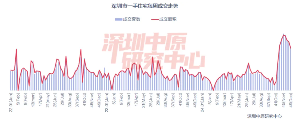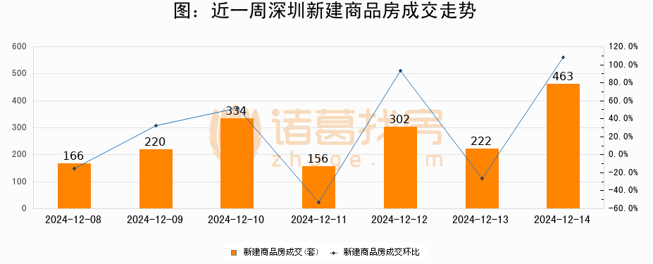 然而,《国家商报》记者注意到,与今年10月和11月相比,深圳房地产市场进入12月以来,整体去化情况有所下降。根据深圳中原地产研究院的数据,上周(12月2日-8日),深圳房屋交易数量和面积环比下降10%以上。