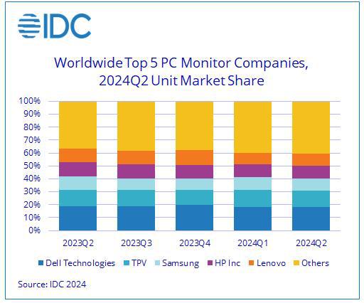 显示器市场正在经历 2022 年与 2023 年度下滑后,销售开始复苏。依据统计机构 IDC 全球数据 PC 显示器市场正在 2024 2年第二季度结束后,出货量同比增长 5.9%。由于面板和其它部件成本稳定, Windows 11 PC 持续转移会进一步增加刺激长度,IDC 预估,2024 年度显示市场的年增长率将超过 2%。