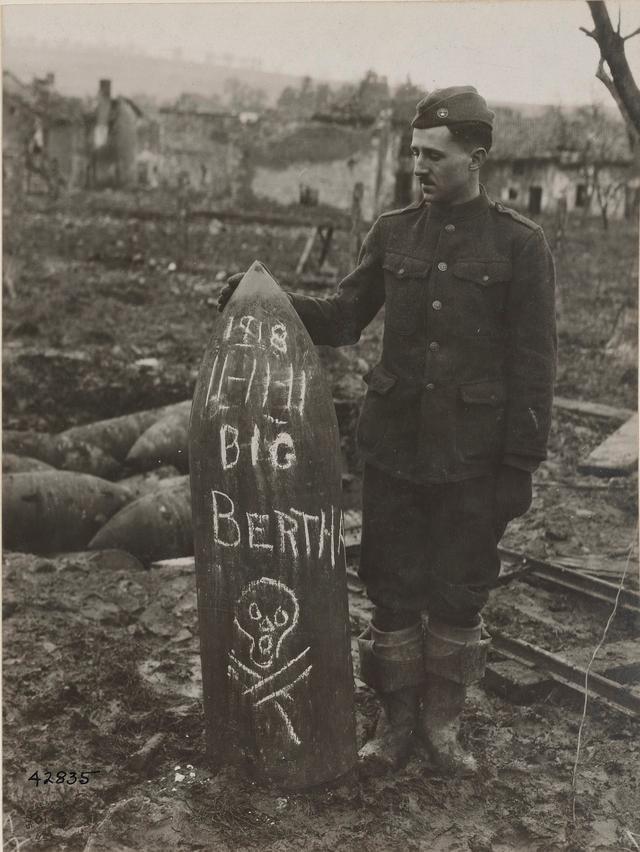 "大贝莎“枪在第一次世界大战期间经常出现在战场上,但它的出现可以带来很大的心理压力。它们通常与比利时列日的硬仗有关,在占领这个强大的堡垒时起着关键作用。