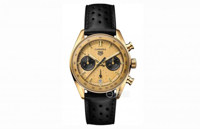 手表评价:泰格豪雅卡莱拉系列问世 60 周年推出的 18K 金表(型号:CBS2240.由内而外使用FC8319 18K 金制,表壳,表把,记时按钮,指针,时标,盘面都是这样,绝对诚意十足。无论哪个品牌,如此高的认可度都很难一见钟情。39 毫米的表径保证了手表的整体和谐与舒适。表盘镀 18K 金色竖直磨砂呈现出纵向拉丝的复古气质,3 记时盘和点位30分钟。 9 12小时累计记时盘采用黑色螺纹装饰,在黄金制成的表盘上更加突出。使用指针和时标 18K 金子材料,并覆盖白色 Super-LumiNova ® 莹光涂料。隆起的“玻璃盒”(glassbox)"蓝宝石镜面使整体更具复古气息,同时也在视觉上放大了测速记时圈。过于奢华的全金材料,在里面搭载的是 TH20-00 计时机芯是经典的Heuer。 02 高级机芯版本,采用双向上链设计,摆频 28800 次 / 时,并具有 80 动力储备能力小时。