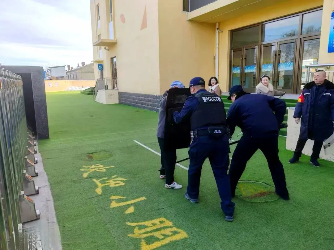 以“演”促练,以“练”筑防。各派出所组织警力深入校园开展培训教学和演练指导,详细讲解巨盾、钢叉、防爆长警棍等防护装备的正确使用,组织校园“最小作战单位”实训演练,模拟不同场景。演练结束后,民警现场指导和纠正参与者处理时机不当、设备使用不规范等问题,帮助参与者在实战中发现和解决问题,确保整合和学以致用,进一步提高了参与者的安全意识和应对突发事件的能力。