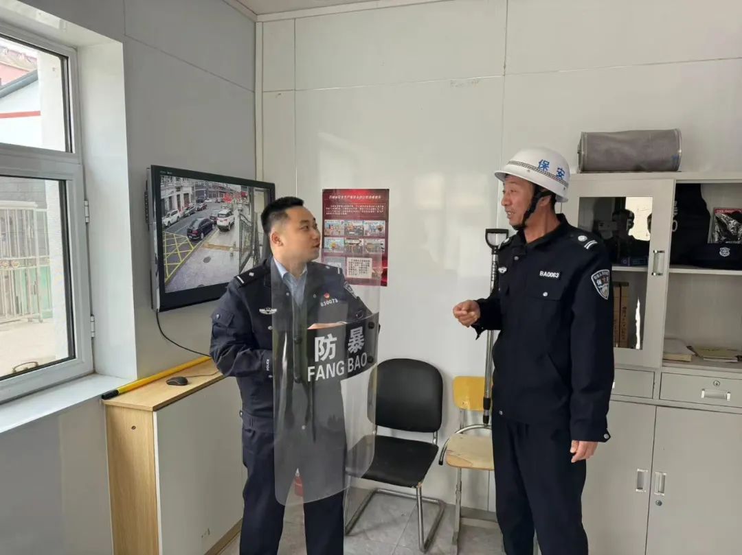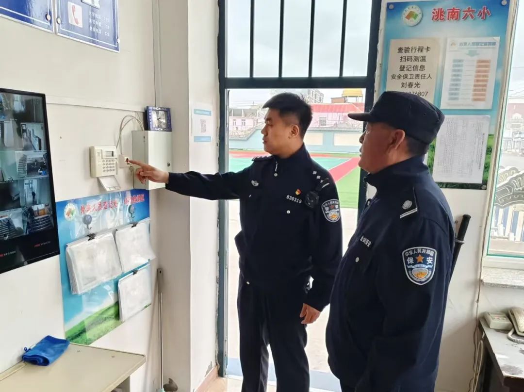 "必须定期检查防暴设备、报警系统等硬件配置,严格检查进出校园的人员,不得有任何疏漏。”富文派出所民警告诉学校工作人员。为进一步加强校园安全管理,及时消除学校各种安全隐患,各派出所组织警力进入校园进行安全检查,对学校门口硬隔离、应急疏散通道、消防设备是否完好、“一键式”报警系统运行情况进行监督检查,督促学校认真落实“人防、防御、技术防御”等预防机制。确保安全隐患排查整改无漏洞,无盲点,无死角。