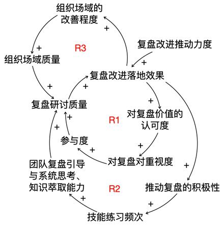 同时,如果复试执行到位,组织的流程、制度、规范甚至一些根深蒂固的规则和信念都会得到改善,有助于改善公司文化,让大家更愿意深刻反思自己,坦诚表达自己,激发集体智慧,从而促进复试效果的提高(如图 2 中 R3 所示)。