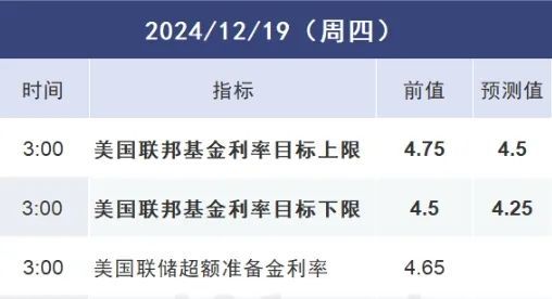 2. 美联储利率决议将于12月19日(星期四)公布。