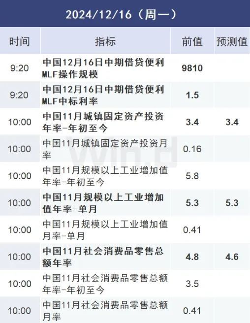 1. 中国将于12月16日(星期一)公布11月份的多项经济指标。