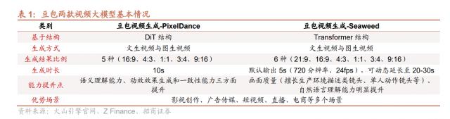9 月 24 日,火山发动机正式推出豆包 PixelDance 与 Seaweed 两个视频大模型。招商局证券梁程加等人 10 月 7 日本研究报告显示,根据其计算,豆包视频模型( PixelDanceV1.4 模型为例)估计训练侧需要预约。 75 万张 H100 训练 1 个月,为 Sora 需要训练侧计算能力 4.3 倍;推理侧假设抖音 7 每天生成一亿日活客户 2 分钟视频(其中 30% 由视频大模型生成),每天都需要 41 万张 H100 支持。
