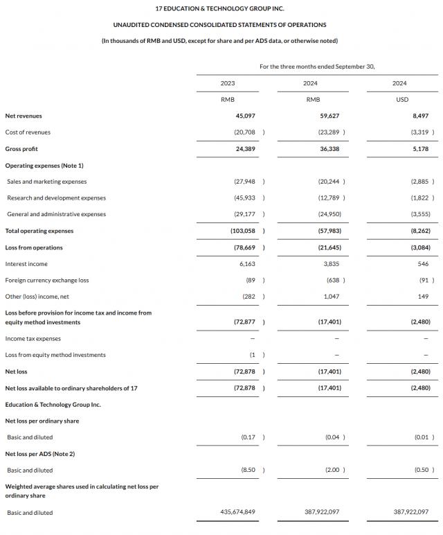 12 月 11 日,共同教育科技(NASDAQ: YQ)发布 2024 第三季度财务报告。