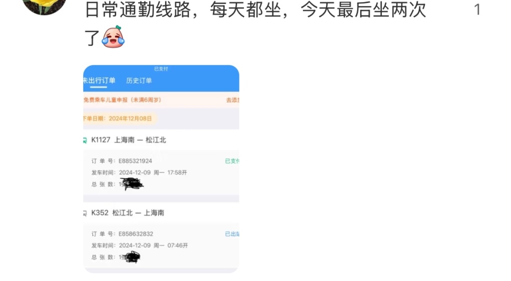松江北站,或松江站,对宋晨来说再熟悉不过了。宋晨在松江住了12年,骑车前往松江北站只需几分钟。自从工作转到徐汇区后,三年来,他几乎每天早上7天:46班绿皮火车,乘坐13号或14号车箱座位,86号。:到达上海南站,6号口到徐汇工作。宋晨在今年五月改名后,仍然习惯于称之为“松江站”。因为公交车太多,在停车前的最后两个月,他的通勤费几乎都是用列车积分兑换的。他说:“想着以后不再坐这条线了,通勤路变得非常珍贵。”