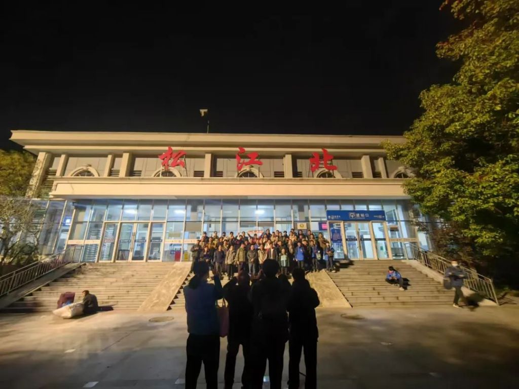 当天20:50上下,火车晚点到达松江北站2分钟。另一批从松江北站出发的“交通爱好者”正在站台上等待。小拾发现来站台的人比他想象的多,可能有一两百人。