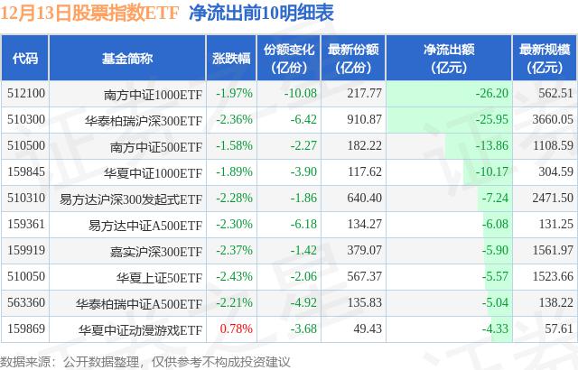 十二月十三日,股指ETF净流出106.11亿元