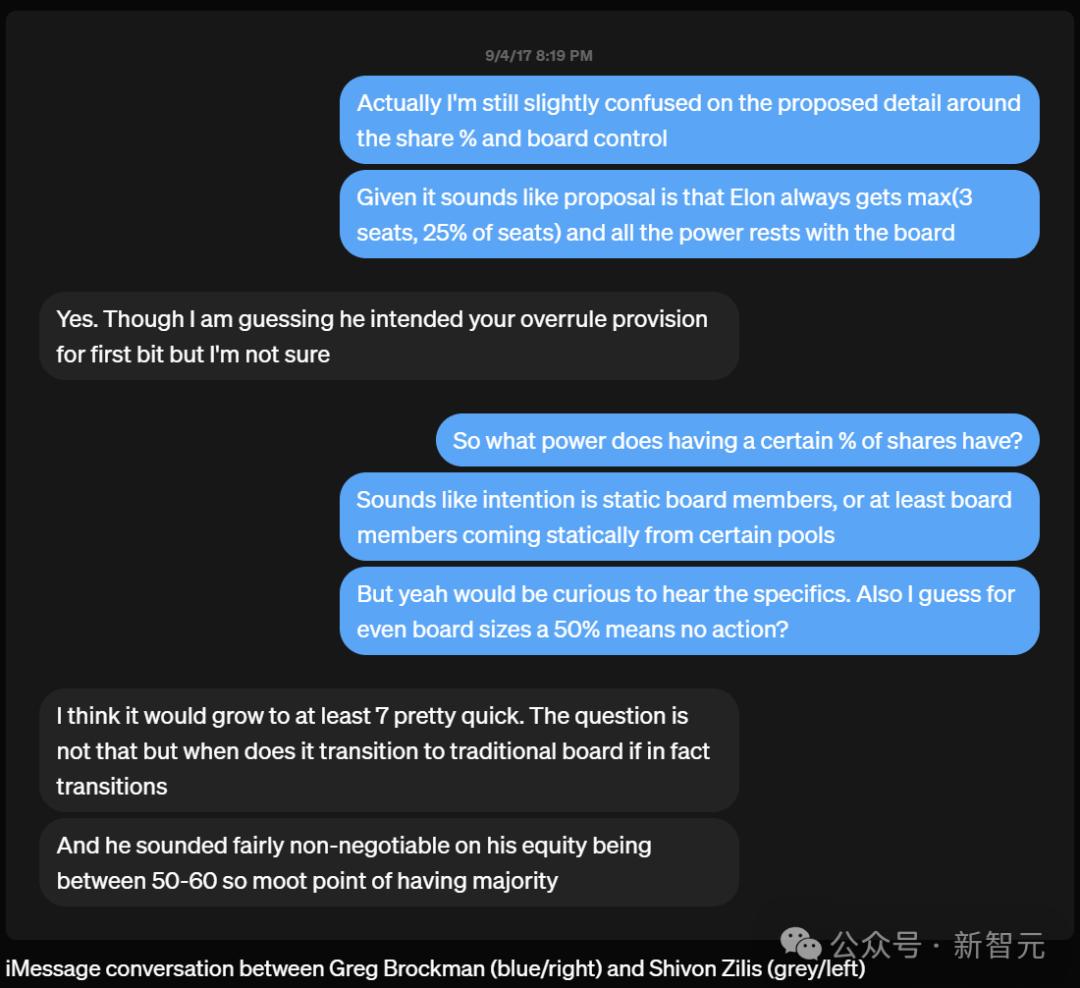 2017年9月4日,Shivon Gregregreg在Zilis 在Brockman的一条信息中写道:「对于拥有50%至60%的股权,他的态度相当强烈,因此对于控股的问题已经不再需要讨论了。」。