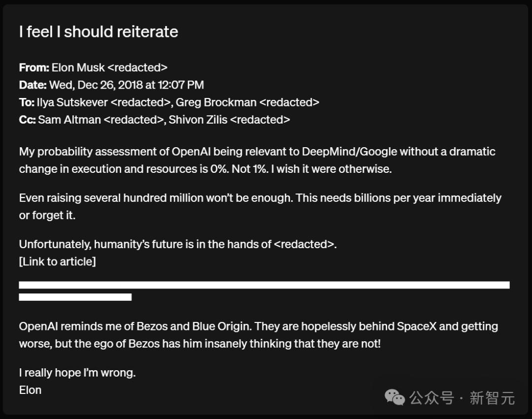 马斯克在2018年1月31日告诉我们:「与谷歌相比,OpenAI正在走向不可避免的失败。显然,我们应该立即采取果断行动,否则除了谷歌以外的所有参与者都将变得微不足道。」