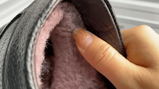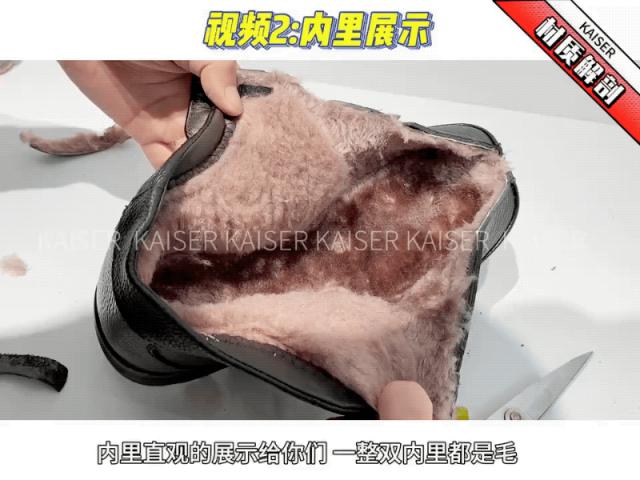 内里是加绒款含有羊毛的加绒层,这种绒毛,满满的裹着脚,很暖和。