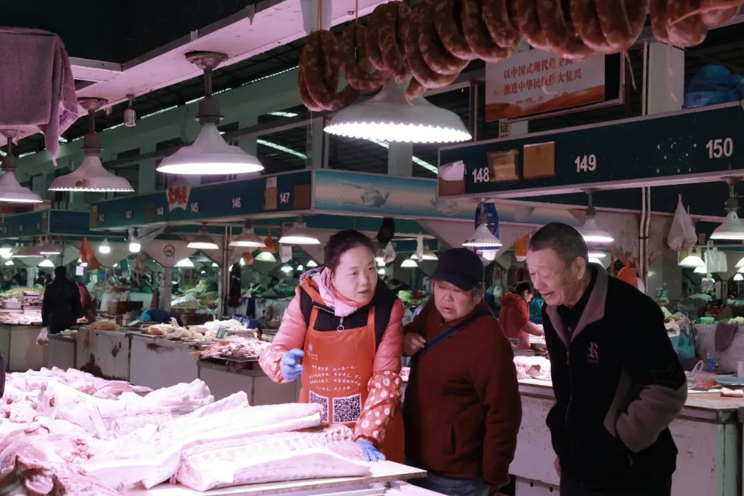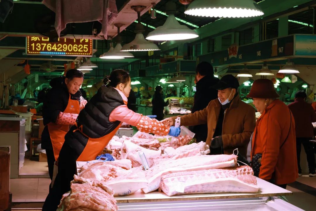 除腌制香肠外,腌制咸肉也成为市场上的热门选择。“香肠用的是猪前腿和后腿肉,所以做出来的香肠口感细腻,软硬可口;这种带骨头的肋肉用来腌制咸肉,味道更香。”摊主正在向前来购买的市民一一推荐。很多市民买好肉,有的会带回家自己做,有的会请商家帮忙加工腌制。根据摊主的说法,近期随着天气变冷,对腌肉、腌香肠的需求明显增加,预计到冬至前后将进入销售旺季。