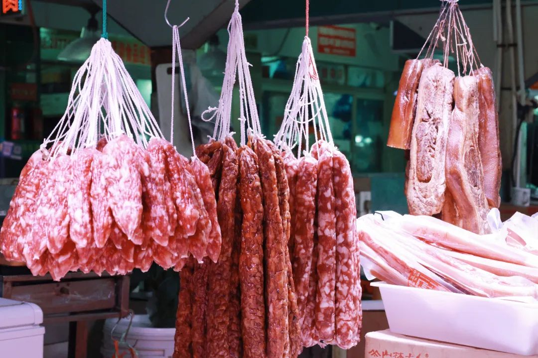 一起到菜市场寻找各种腊肉