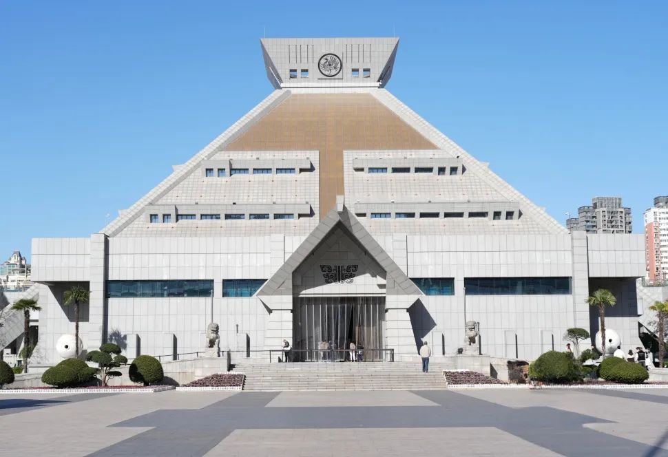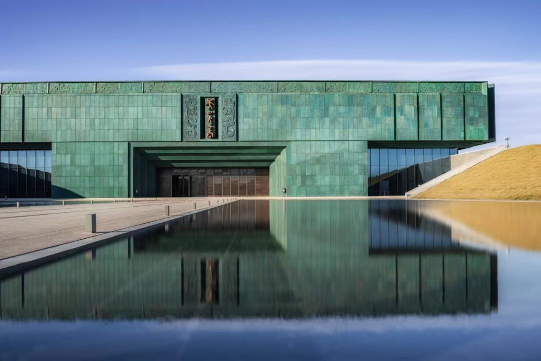 站在博物馆前的字坊是博物馆的代表性建筑之一,以甲骨文和金文中的“文字”的形状装饰着殷商时期铜器上常见的饕餮纹。