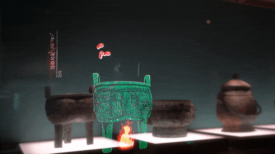 展览馆内,令人震惊的裸眼3D让国宝们动了起来,让游客们瞬间“穿越”回殷商。