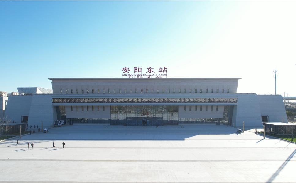 安阳东站的外观是指出土于殷墟的世界铜器冠军司母戊鼎。立面饰以古色古香的中国传统装饰,刻有“安阳”二字的甲骨字体。从远处看,方正雄壮壮观。