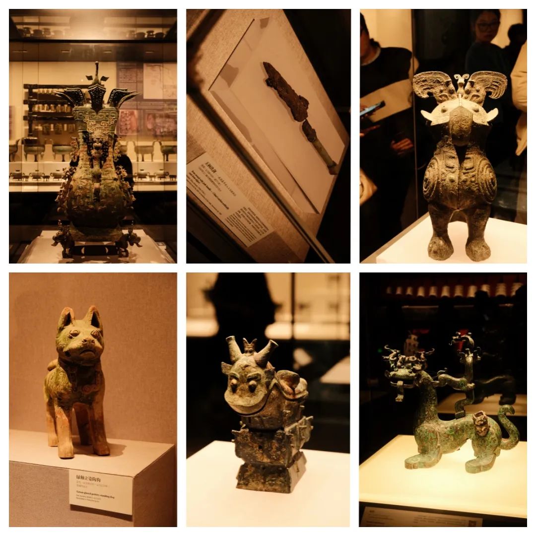 博物院里,除了九大镇院的珍宝,如妇女好尊、四神云气图壁画、莲鹤方壶等。,还有来自2000年前的绿釉立姿陶狗、兽面纹铜方、吐舌头、全身镶嵌绿松石的春秋灵兽铜器...文物可以这么可爱!