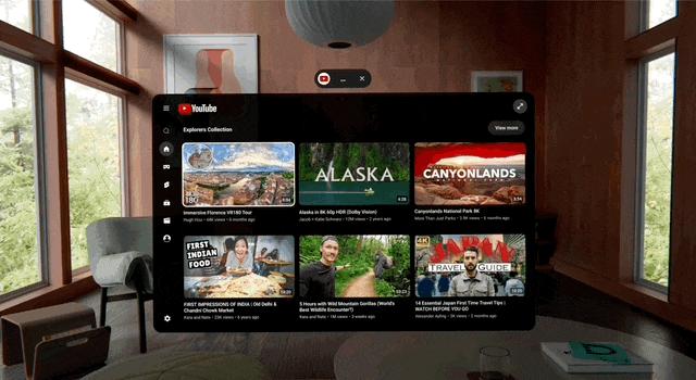 Android XR 的 YouTube 界面