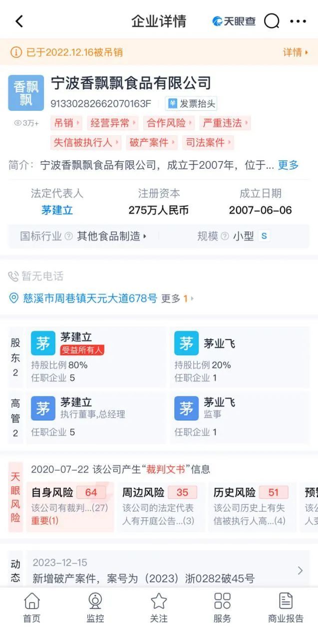 拍卖信息显示,宁波香飘飘食品有限公司已破产,其破产经理将进行公开拍卖。截至发稿时,已有403人报名参加拍卖。