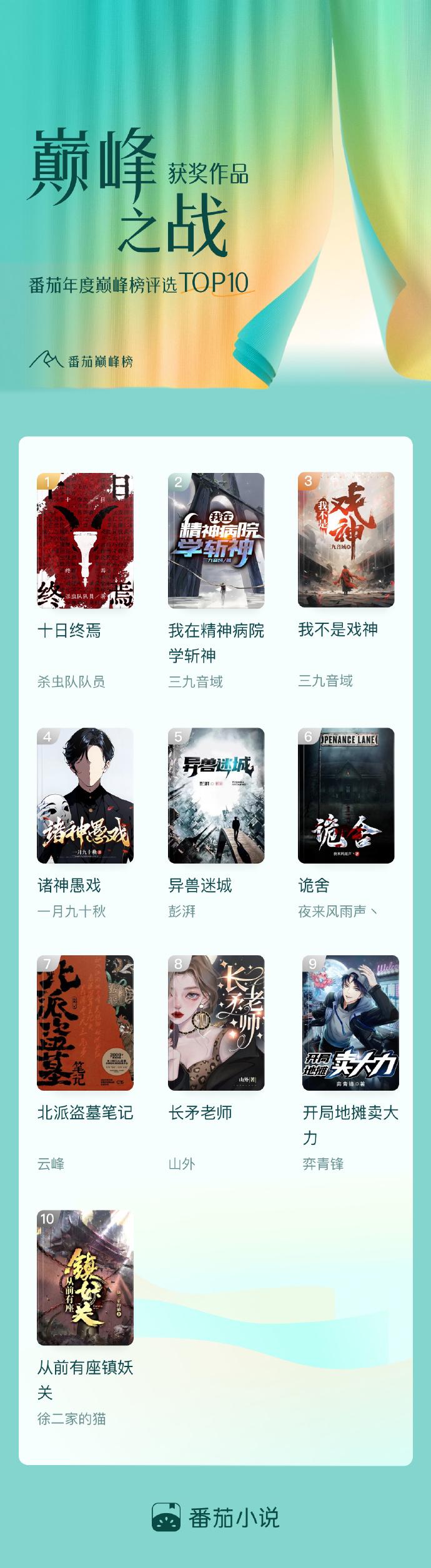 在今年的番茄创大中,《十日终焉》的作者杀虫队成员分享了这样一段话:“巅峰榜对我来说是一个亮点,它的「去类型化」。无论是男性频率还是女性频率,无论是主题还是字数,都不考虑作者的受欢迎程度和过去的作品。无论你是谁,你都可能以新人的身份从人海中杀出,登上巅峰榜单。"