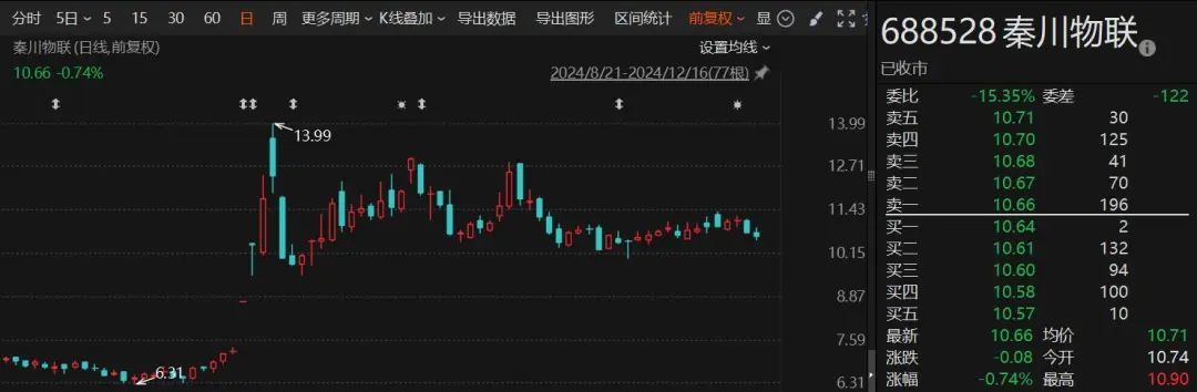 重大资产重组消息发布后,秦川物联股价直线上涨,4个交易日最大涨幅达到92.7%,近三年股价一度创下新高。截至12月16日,秦川物联最新收盘价为10.66元/股,较9月25日收盘价上涨46.8%,最新市值为18亿元。