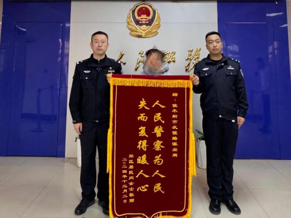 近日,佳木斯市公安局郊区分局友谊路派出所所辖区群众闫女性向友谊路派出所民警送去了一面写着“人民警察为人民服务,失去温暖人心”的横幅,感谢民警为其追回被骗的钱,挽回经济损失。