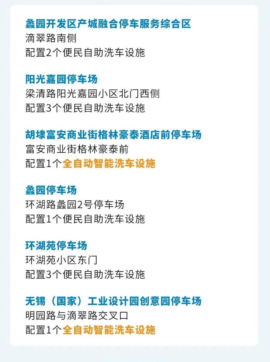 位于梁清路阳光嘉园小区北门西侧,配有3个便民自助洗车设施,24小时向周边居民开放使用。
