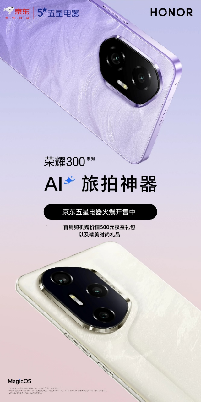 据报道,荣耀300系列包括荣耀300。、荣耀300Pro和荣耀300Ultra的起步价分别为2499元、3399元和4199元。有兴趣的消费者可以去JD.COMMALL、京东电器城市旗舰店、京东五星电器等京东直营线下门店感受真机,江苏消费者可以参加15%的补贴活动。