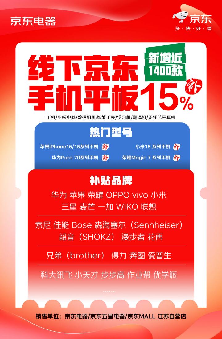 是的,江苏3C补贴已经是Nextlevel了!为了满足新手机产品的市场需求,JD.COM12.12、3C补贴商品池再次扩大,荣耀300系列上线时提供15%的补贴,每件最多可补贴1500元。同时,JD.COM直营店也将下半年最大化新产品纳入补贴商品池,包括手机、平板电脑、数码相机(包括机身、套机、无镜头等配件)、近1400款畅销产品,包括智能手表、学习机、翻译机、无线蓝牙耳机等7大3C品类28个品牌,提供产品成交价15%的补贴支付,京东直营店同步可叠加旧手机平板新旧置换“旧机折旧升值20%”活动。