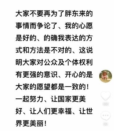 结果不久,于东来又出来承认自己的错误,坦然承认自己的愿望是好的,表达方式有问题。