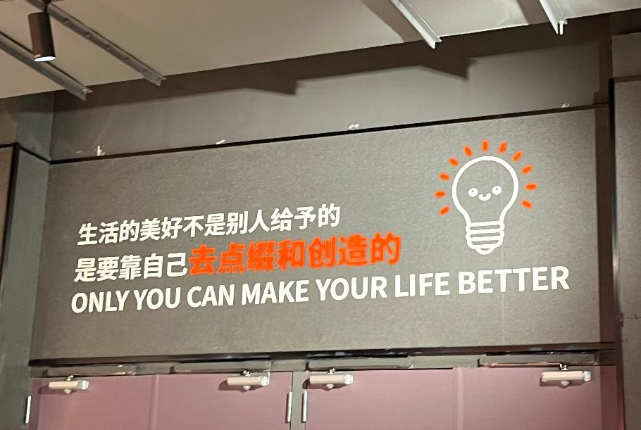 即使在这些永辉超市的显眼之处,也像胖东来一样,印着很多口号。然而,与胖东来相比,永辉的变化总是让人觉得有点不好。
