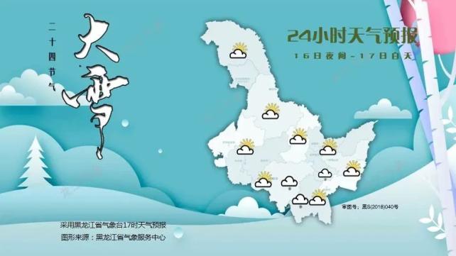 16日晚至17日白天:全市多云间晴;偏西风2~三级;北部最低温度-30~-26℃,其它区域-25℃~-22℃,北部最高温度-19℃~-16℃,其它区域-15℃~-13℃。