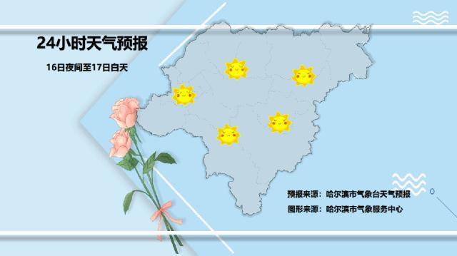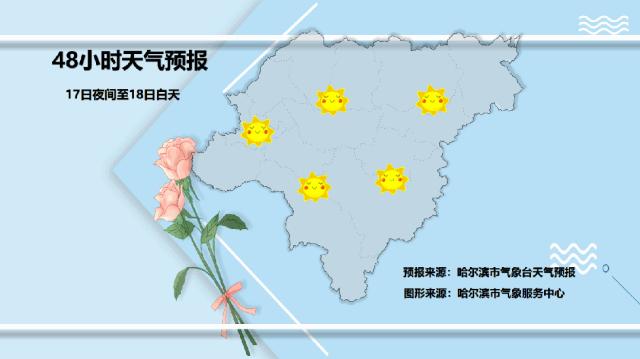 十七日晚上到十八日白天:整个城市有时晴天多云;西南风2~四级;北部最低温度-32~-28℃,其它区域-27℃~-最高温度为24℃-16℃。~-11℃。