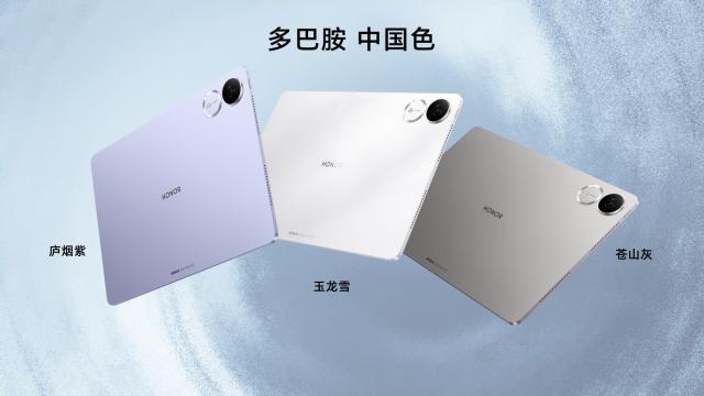 荣耀平板在外观设计上, V9 提供三种灵感来源于中国风的配色方案:庐烟紫、玉龙雪、苍山灰,充分满足不同用户的审美需求。