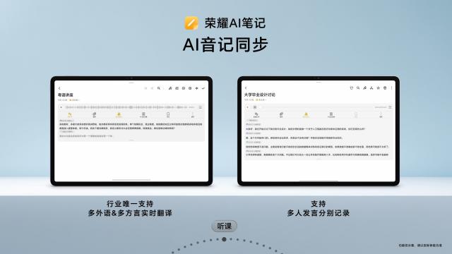 就软件而言,荣耀平板 V9 与最新的融合 AI 技术,支持 AI 应用与传统应用 AI 化学多重更新。荣耀 AI 通过智能化的方式,助手可以解决顾客的日常问题,而荣耀 AI 笔记本支持即时语音转换、实时翻译、语言识别等功能,特别是多语言和多方言的处理。不管是听课笔记,会议纪要,还是外语学习,荣耀 AI 可以准确地捕捉和总结笔记,大大提高学习和工作的效率。